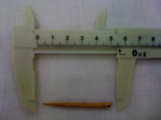 ①豚バラの串を飲み込んだダックス(都城市より夜間救急に来院)。